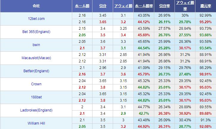 アジアンハンディキャップはホームチームに-0.25が設定されています。